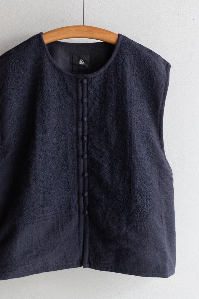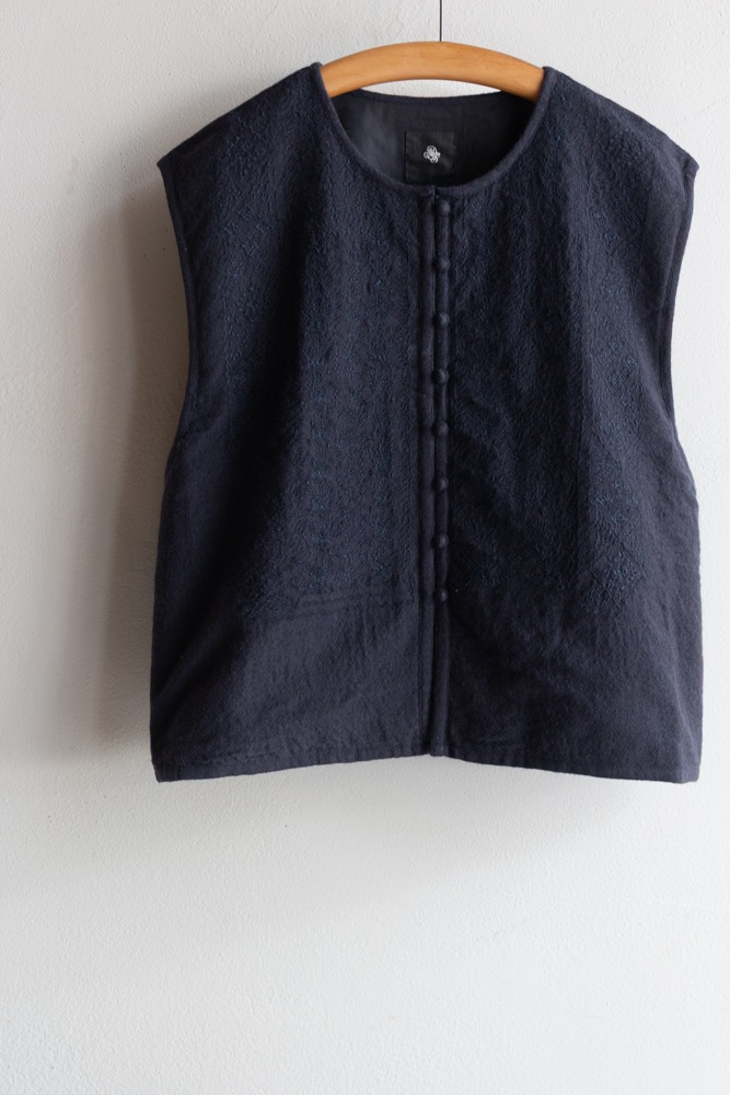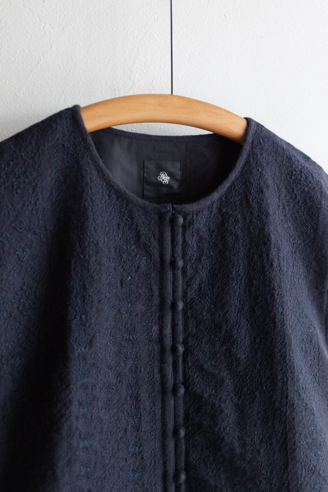 maison de soil メゾンドソイル | BOILED WOOL PLAIN EMB BOLERO Col : NAVY