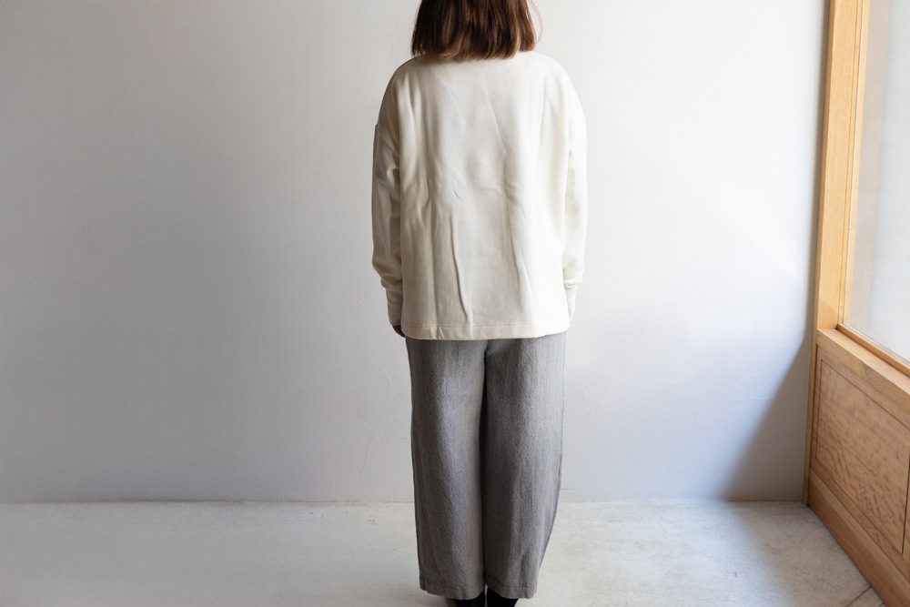 ボリュームのあるボトムスともバランスよくまとまります。