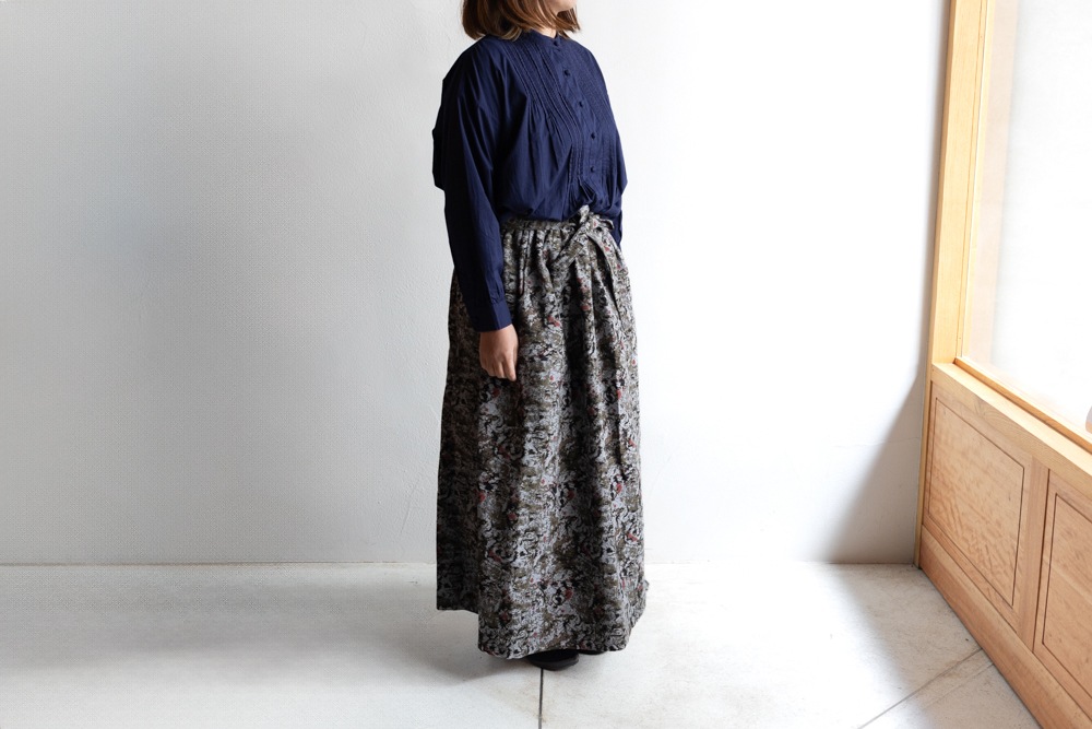 農婦が着用していたラップスカートをデザインソースにした