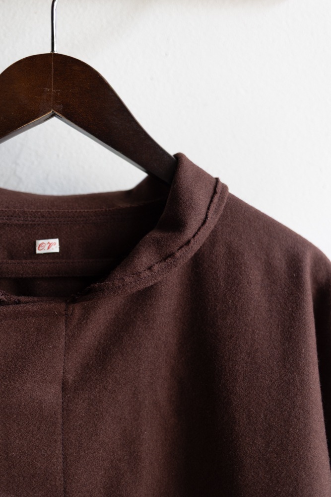 襟は一枚布で仕立て、縁だけを軽く押さえたシンプルなつくり。