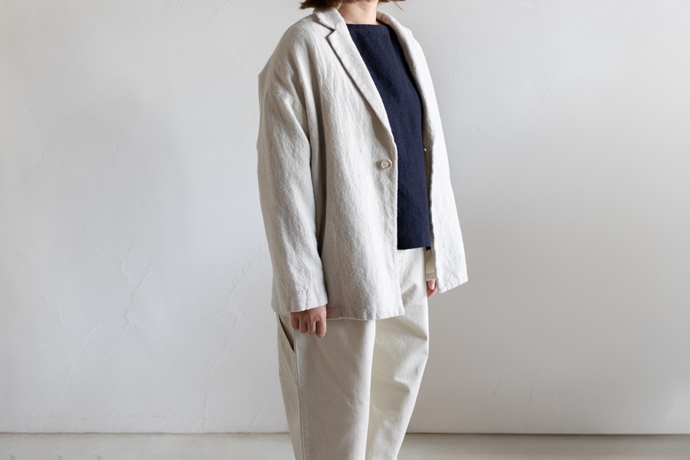 ウールとリネンを掛け合わせた縮絨素材を使用した
