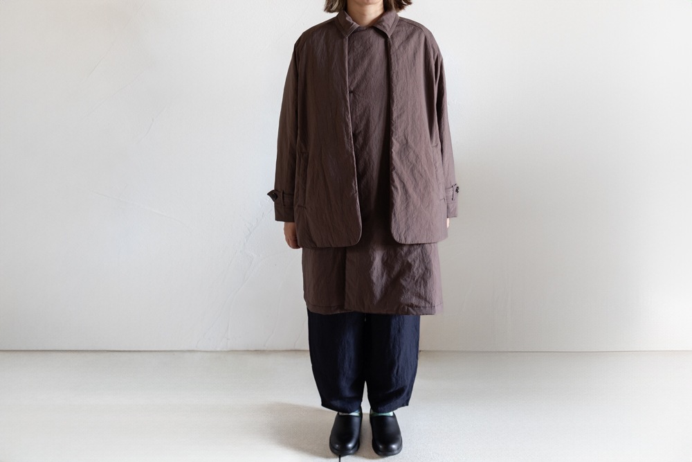 すっぽりと包み込むようなシルエットは、防寒性と存在感を兼ね備えつつ、