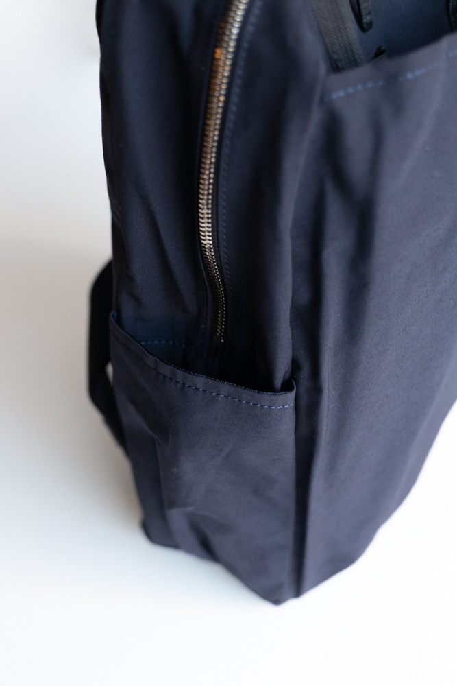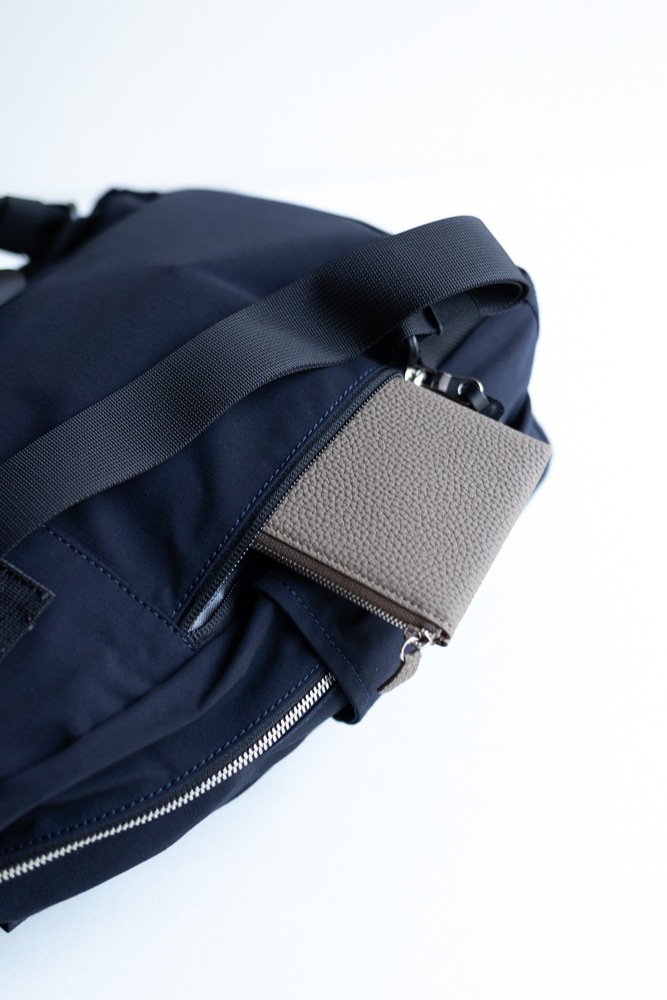 外側には両サイドにポケットが2つ、さらには背面にもポケットが付いているのでお財布などの収納もでき安心です。