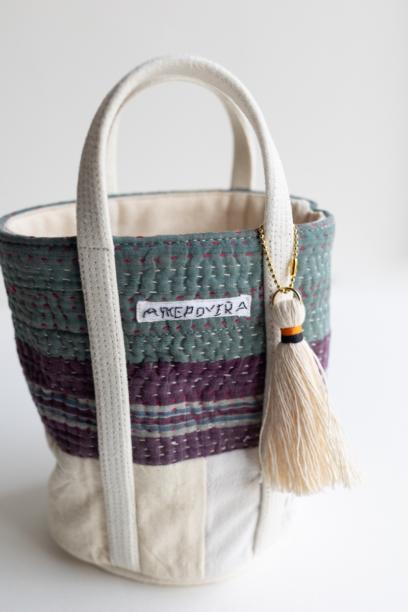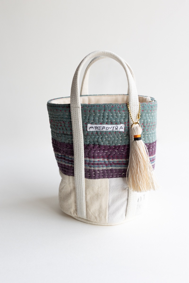 ARTE POVERA アルテポーヴェラ | インドキルトラリー & フランスシーツMIX NEW ラウンドBAG (S) C