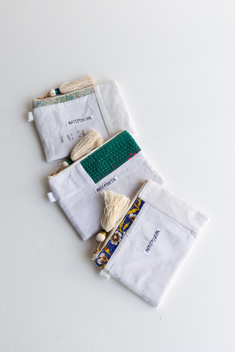 ARTE POVERA アルテポーヴェラ | インドキルトラリー & フランスシーツ MIXポーチ (S)