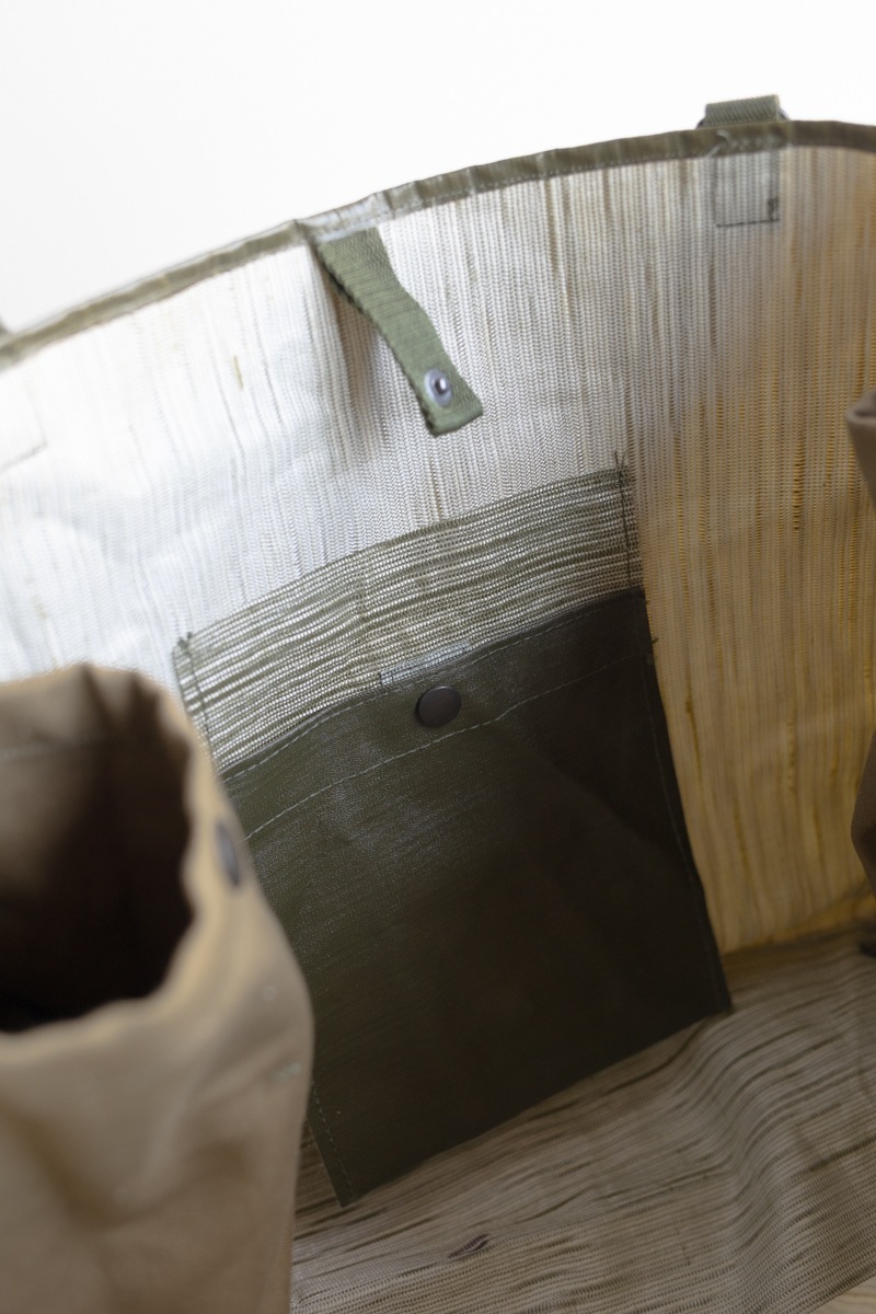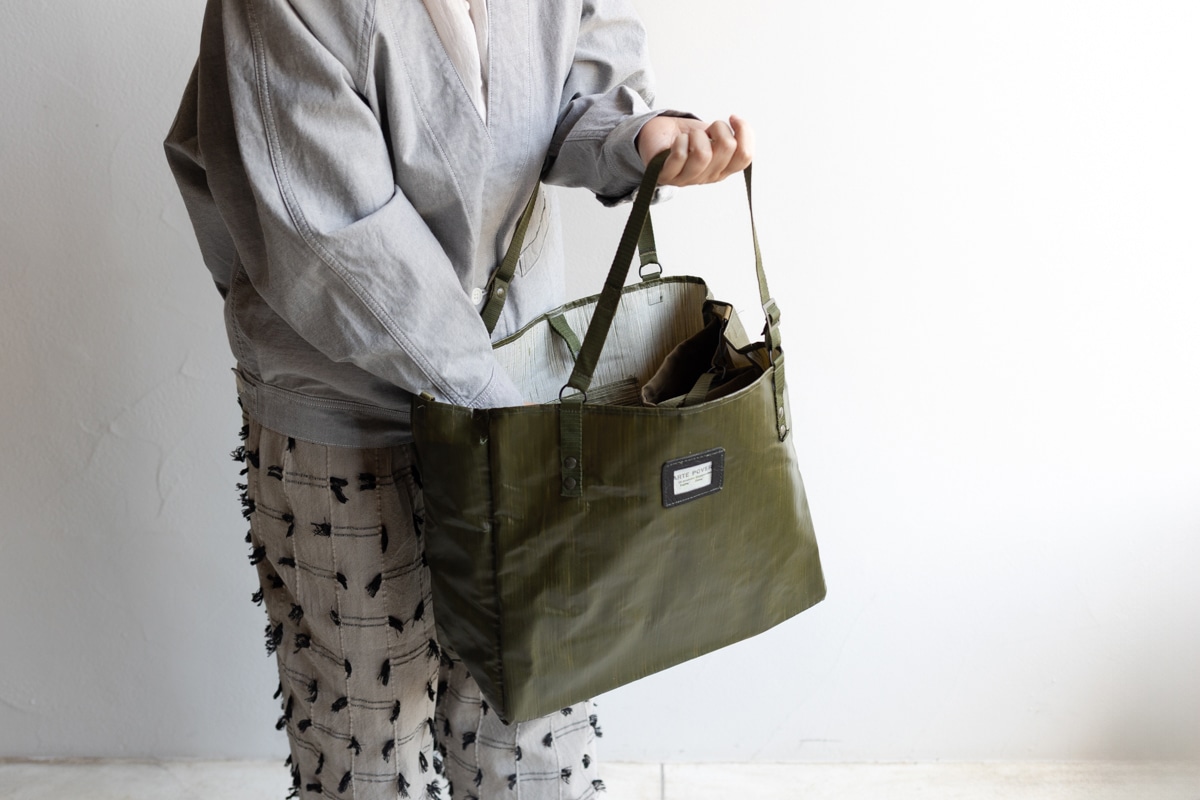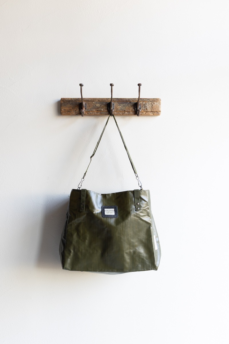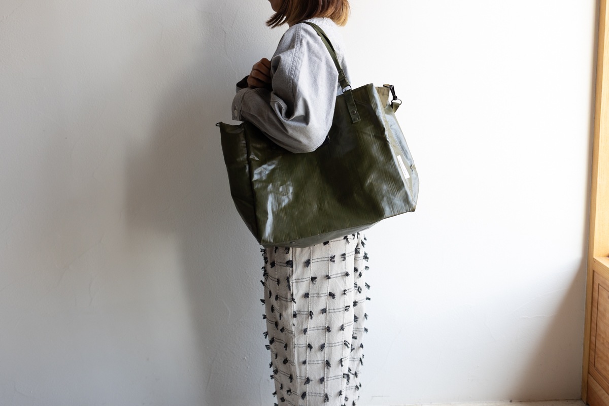 チェコ軍のPVC素材バッグをリメイクして作られた、