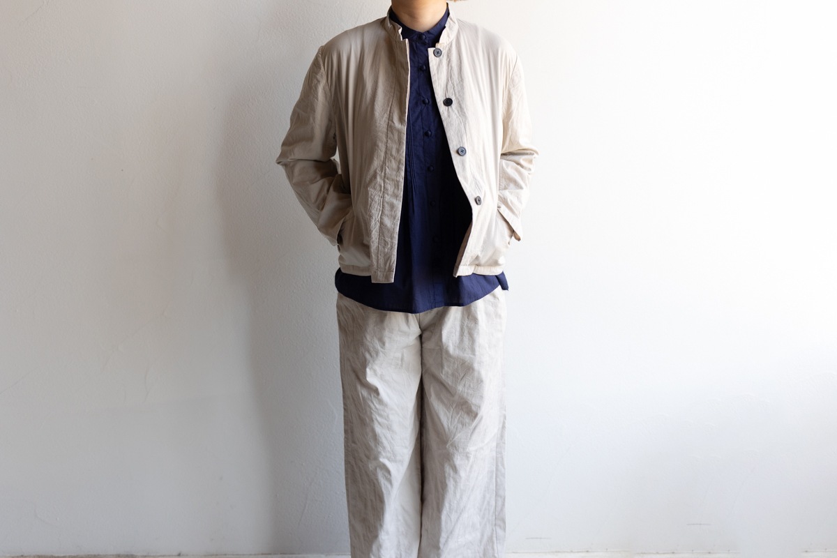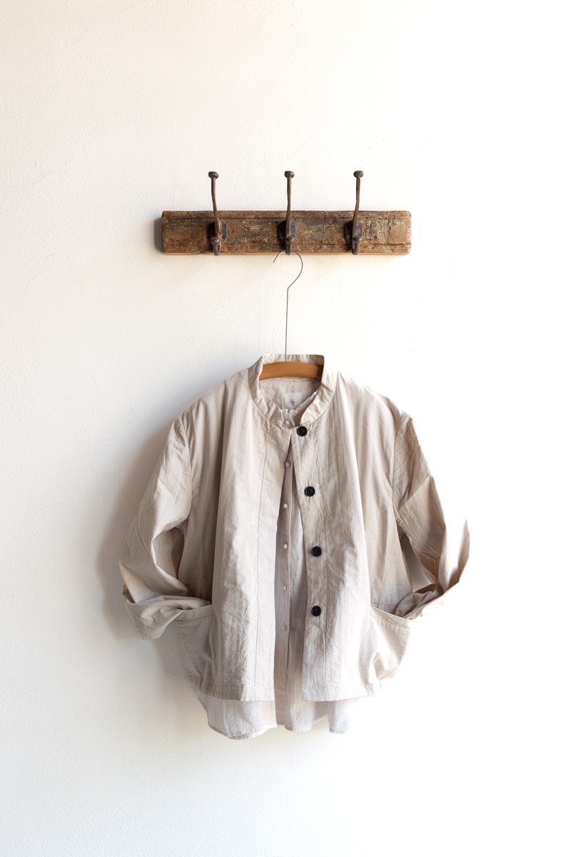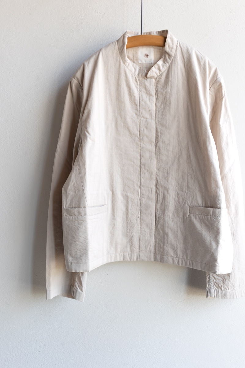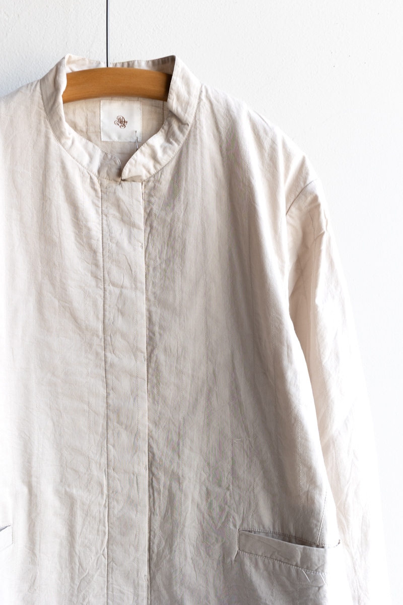 maison de soil メゾンドソイル | 60s STITCHED ORGANIC CAMBRIC STAND COLLAR FLY FRONT JACKET Col : Lt BEIGE