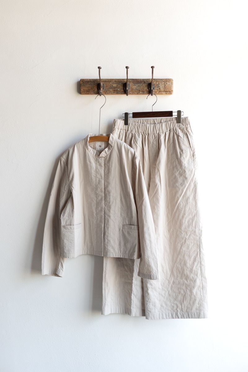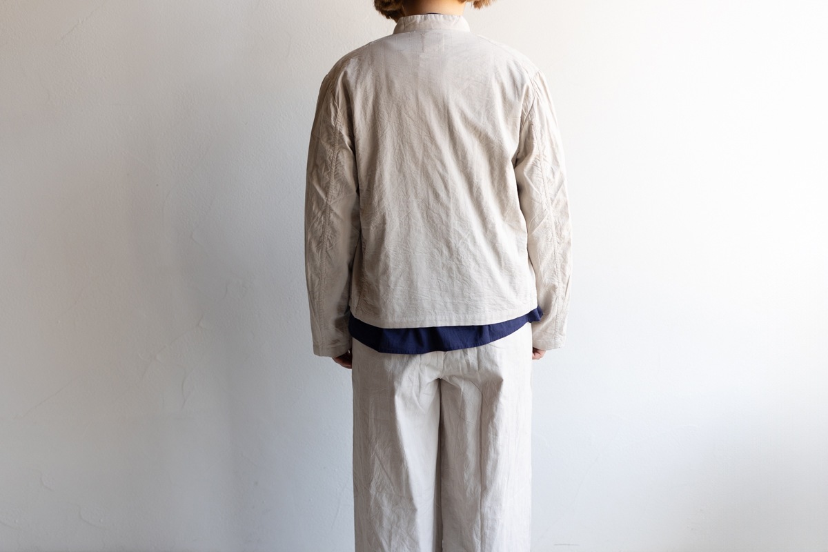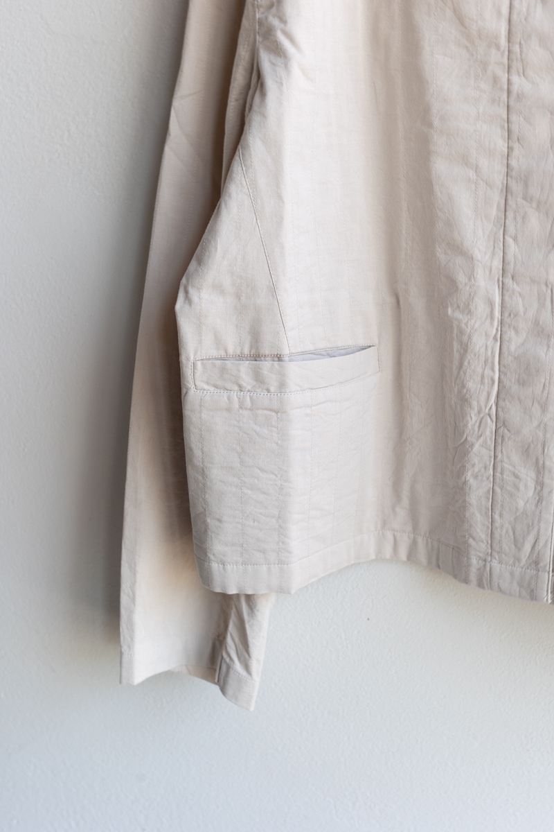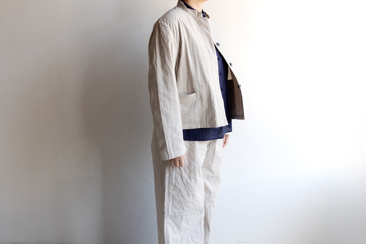 maison de soil メゾンドソイル | 60s STITCHED ORGANIC CAMBRIC STAND COLLAR FLY FRONT JACKET Col : Lt BEIGE